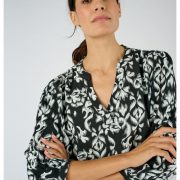 On aime tout dans cette blouse… Tout d’abord, sa coupe ample confortable dans un tissu pure viscose Lenzing(TM) EcoVero(TM)souple et fluide, moins gourmande en eau qu’une viscose classique. On apprécie aussi tous ces petits détails qui en font un indispensable de saison. Tout d’abord, ses détails de fronces sous les empiècements épaules et en tête des manches qui offrent une belle aisance. On aime aussi ses manches 3/4 ballon très actuelles et confortables terminées par petits poignets boutonnés. Col rond ouvert en V. Fronces sous l’empiècement dos. Ce top aux couleurs de saison sait se marier aisément à du blanc pour un look lumineux. On l’imagine aussi mixé à des couleurs coordonnées pour un look estival des plus désirables. Enfin, pour être looké de la tête aux pieds on la coordonne au pantalon vendu sur ce site pour jouer l’esprit fausse combi en total look. Longueur de la blouse imprimée femme 64 cm environ.