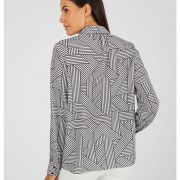 Pile dans la tendance graphique et de l’indémodable tandem noir/blanc, ce chemisier en crêpe reliéfé fluide, léger et doux est un véritable atout dans votre garde-robe. En plus, il est fabriqué à 97% en polyester recyclé (une vraie aubaine !) et comporte de l’élasthanne pour jouer la carte du confort. En mode city, il est parfait avec un pantalon noir à liseré contrastant côté et une veste de blazer. Pour une tenue du quotidien, ce top femme accompagne une jupe midi ou un pantalon blanc ou noir. Col chemisier monté sur pied de col. Patte de boutonnage pour une bonne tenue. Manches longues à larges poignets boutonnés. Pour assurer côté confort, ce chemisier femme possède des fronces sous les empiècements épaules et sous l’encolure au dos. Longueur du chemisier femme imprimé graphique 64 cm environ.