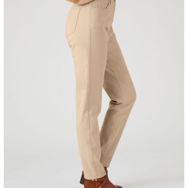 Impossible de passer à côté de la coupe mom actuelle et confortable ! Le jean mom s’offre une coupe droite, une taille haute et est plus large au niveau des hanches… en un mot, il sublime la taille. Sa coupe 5 poches en coton majoritaire et élasthanne pour l’aisance et la liberté de mouvements conserve le cap de la modernité. Son coloris beige chiné intemporel s’associe à de nombreuses teintes unies de hauts, comme à des tops fleuris ou graphiques… laissez libre cours à votre imagination et créer le style qui vous convient. Pour être dans l’air du temps, on le porte bas relevé et on chausse une paire de baskets ou de mocassins. Ceinture à passants avec élastique plat intérieur invisible. Bouton, glissière, poches cavalières et poche ticket devant. Rehausse et poches plaquées au dos. Longueur entrejambe du pantalon femme 74 cm, largeur bas 16 cm environ.